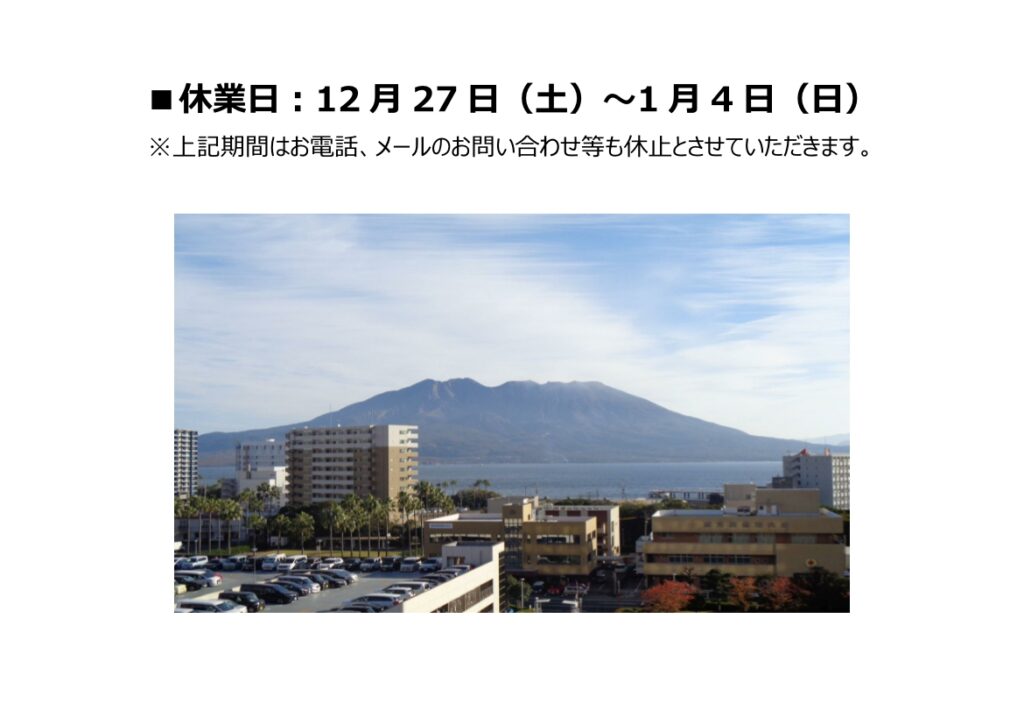 休業期間中にいただきましたお問い合わせにつきましては2026年1月5日(月)より順次ご連絡させていただきます。