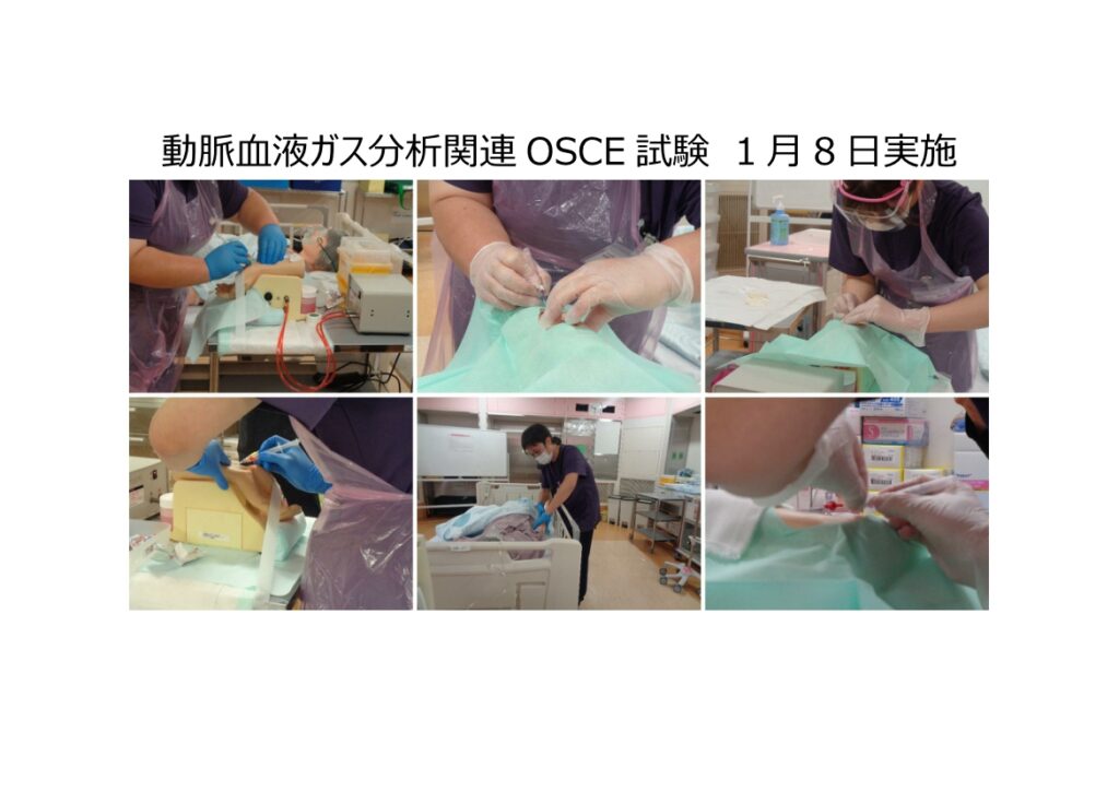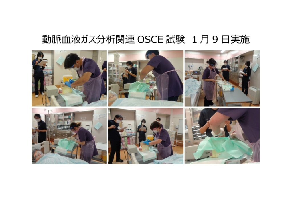 1月8・9日に動脈血液ガス分析関連受講生6名の技術(OSCE)試験が実施されました😊✨
